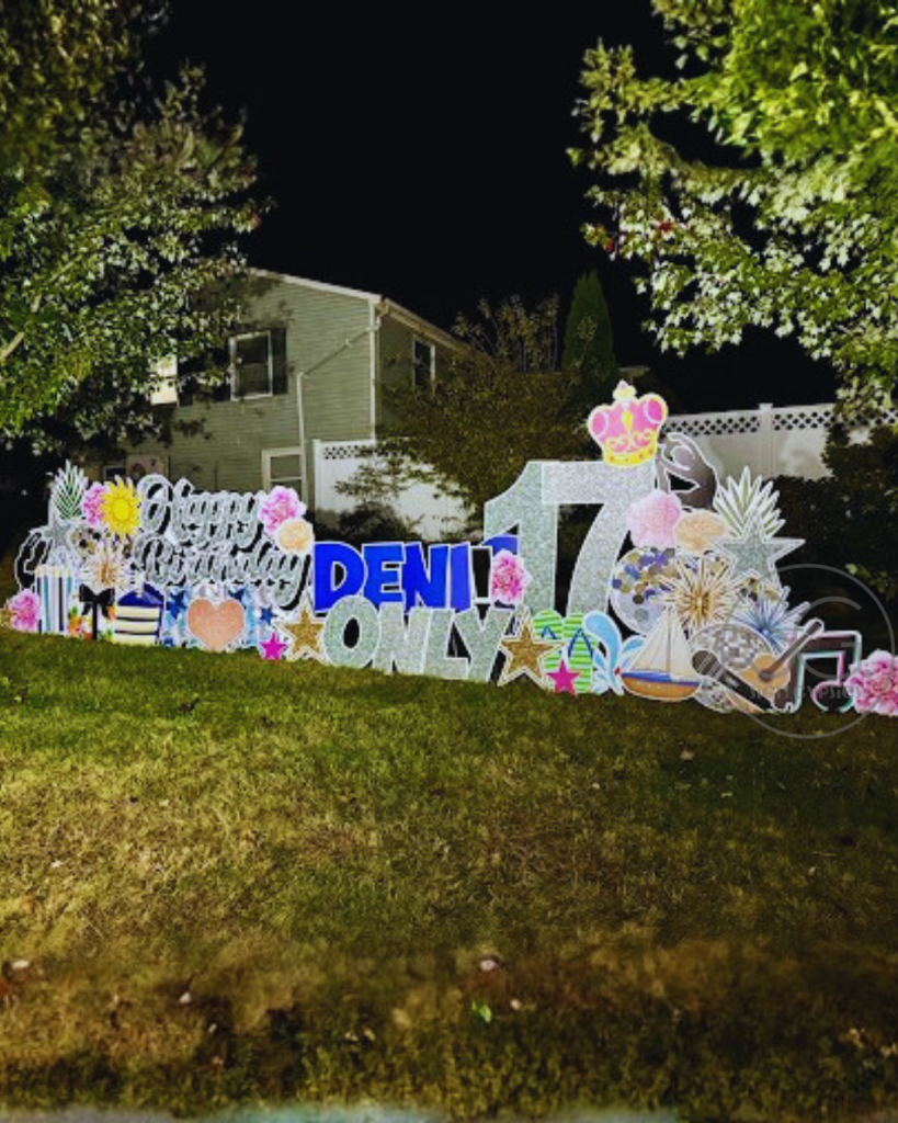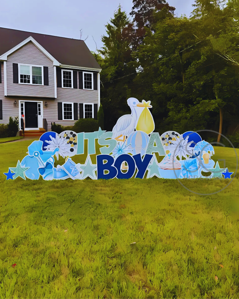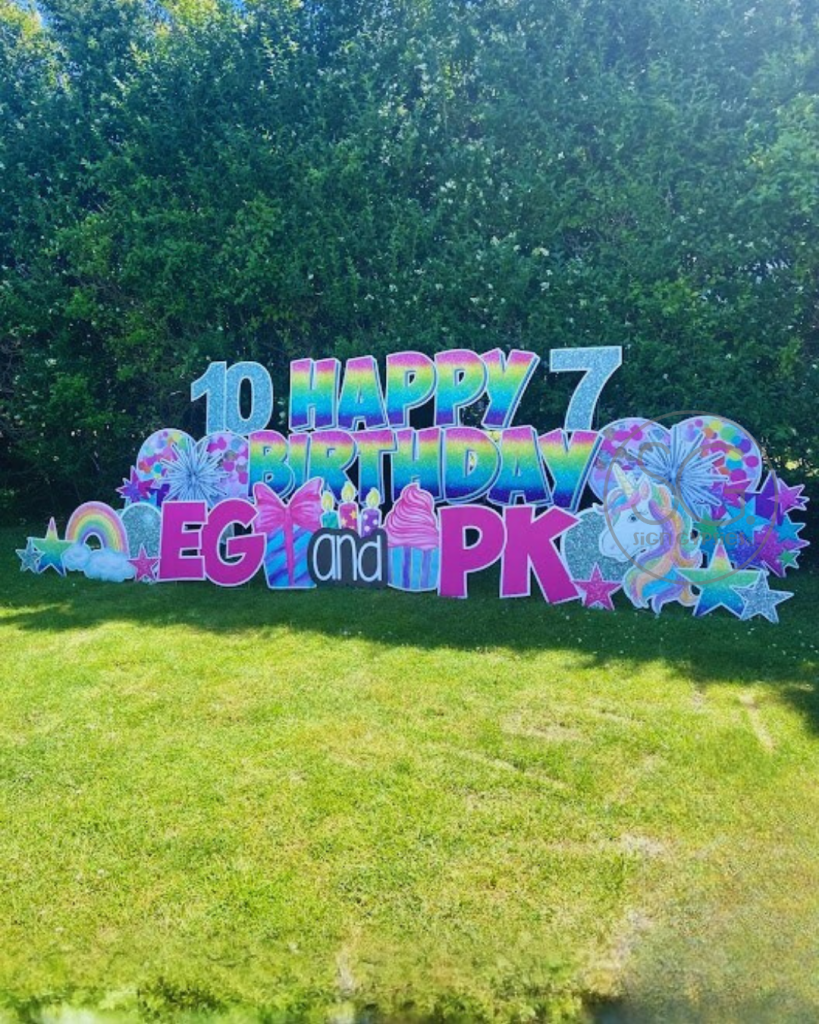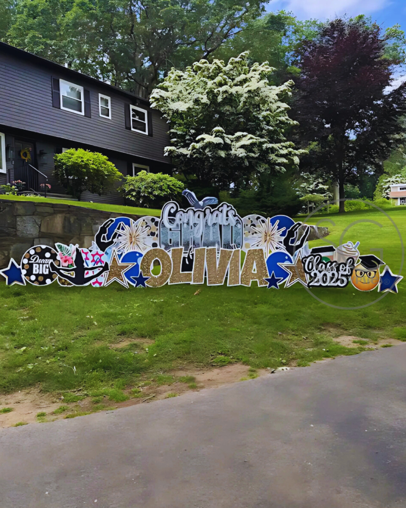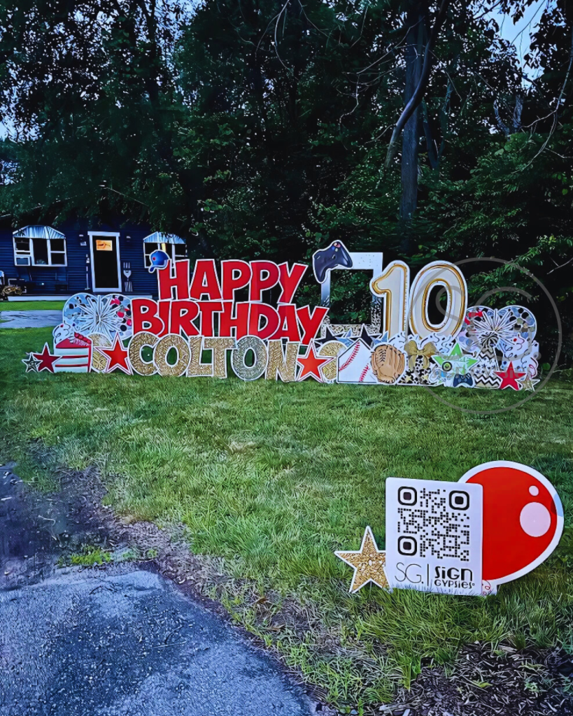 Sign Gypsies makes it super simple, & we take care of everything for you! A yard greeting includes a personalized phrase, delivery, set-up, & pick up approximately 24 hours later. Coordinating graphics and stars add the perfect finishing touch to your custom greeting!