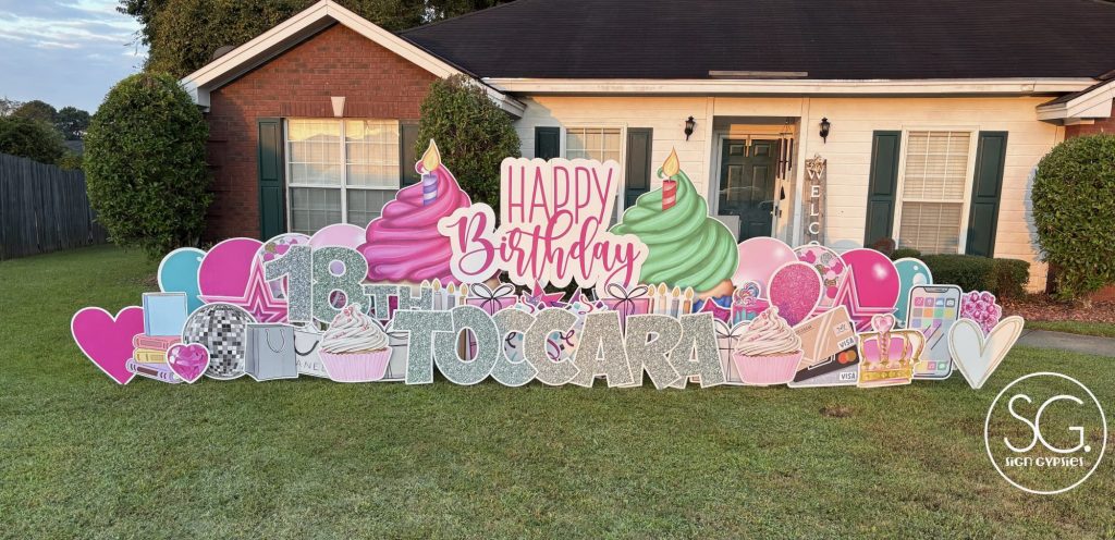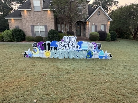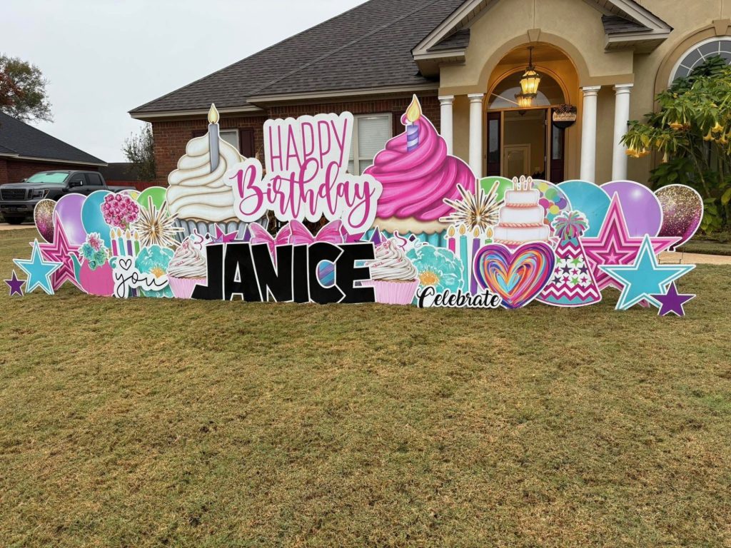 Sign Gypsies makes it super simple, & we take care of everything for you! A yard greeting includes a personalized phrase, delivery, set-up, & pick up approximately 24 hours later. Coordinating graphics and stars add the perfect finishing touch to your custom greeting!