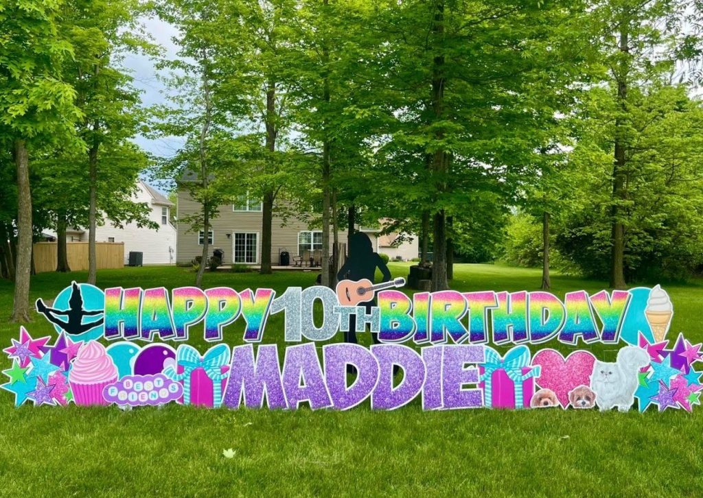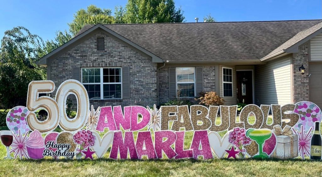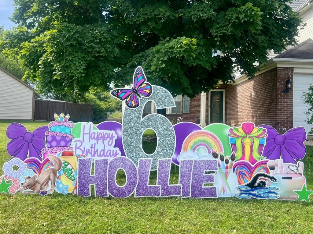 Sign Gypsies makes it super simple, & we take care of everything for you! A yard greeting includes a personalized phrase, delivery, set-up, & pick up approximately 24 hours later. Coordinating graphics and stars add the perfect finishing touch to your custom greeting!