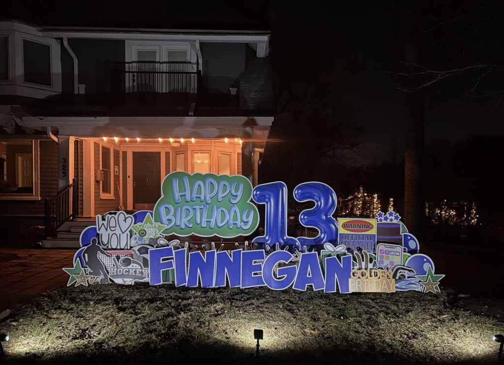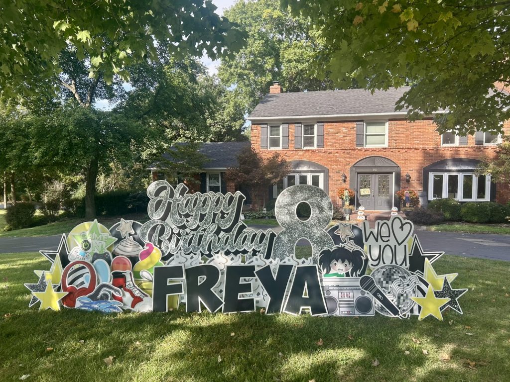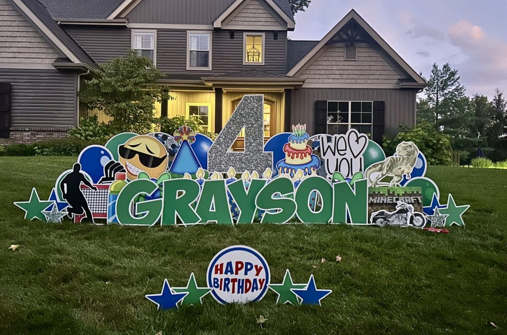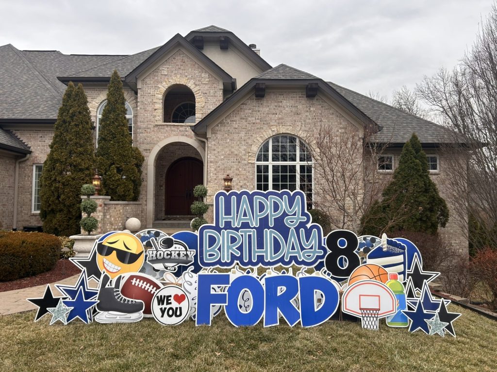 Sign Gypsies makes it super simple, & we take care of everything for you! A yard greeting includes a personalized phrase, delivery, set-up, and pick up approximately 24 hours later. Coordinating graphics and stars add the perfect finishing touch to your custom greeting!
