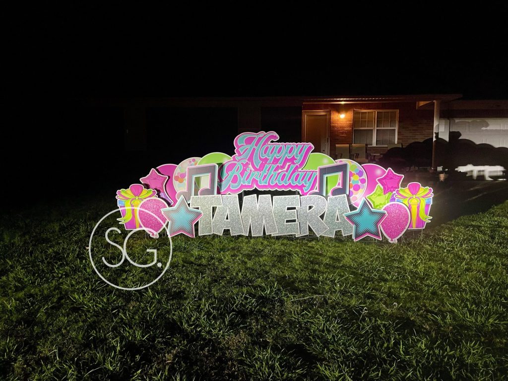 Sign Gypsies makes it super simple, & we take care of everything for you! A yard greeting includes a personalized phrase, delivery, set-up, & pick up approximately 24 hours later. Coordinating graphics and stars add the perfect finishing touch to your custom greeting!