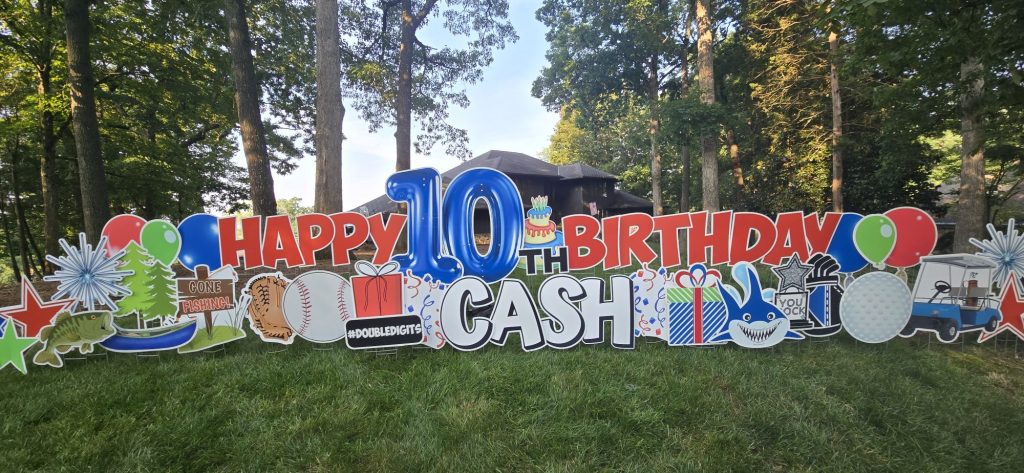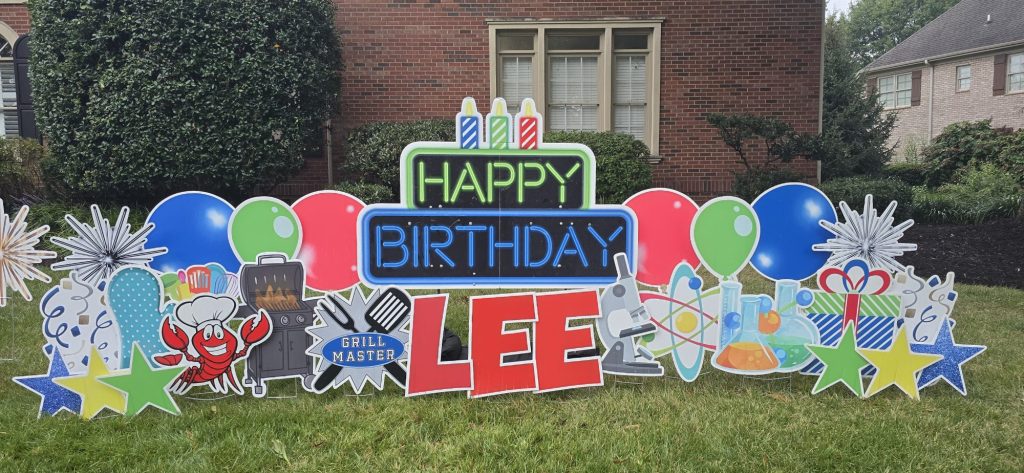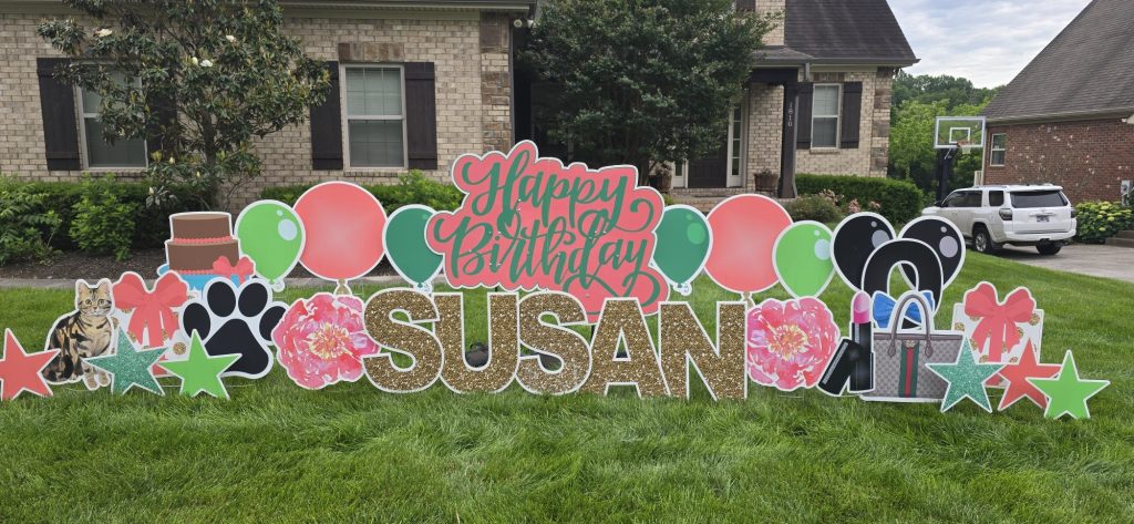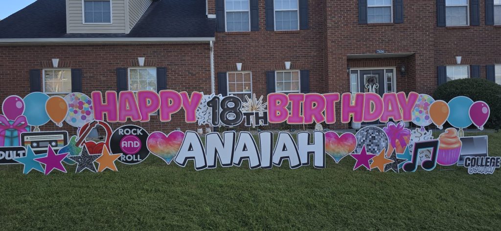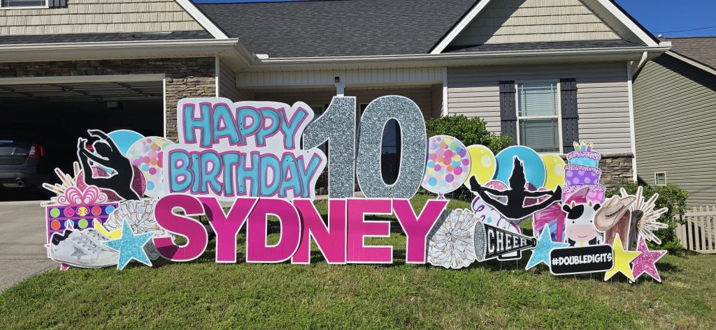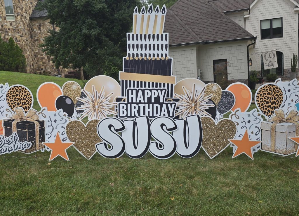 Sign Gypsies makes it super simple, & we take care of everything for you! A yard greeting includes a personalized phrase, delivery, set-up, & pick up approximately 24 hours later. Coordinating graphics and stars add the perfect finishing touch to your custom greeting!